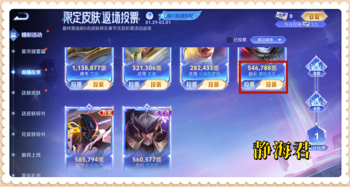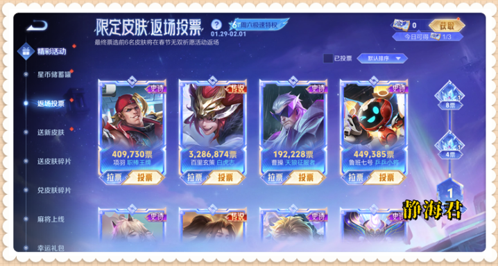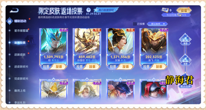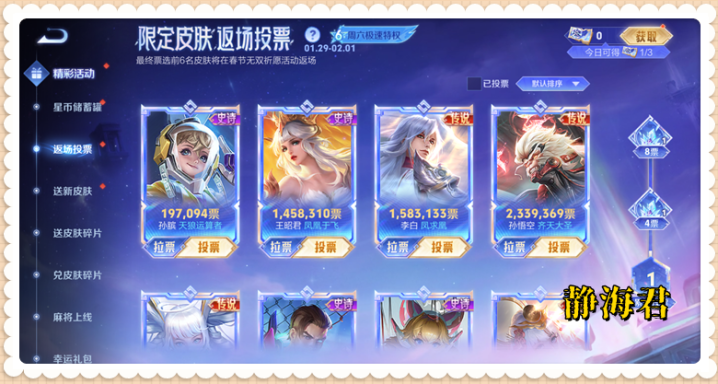 说到这里,肯定有小伙伴会问了,如果我想为我自己心仪的皮肤多投几票,应该怎么做呢?